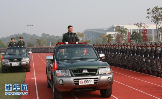 2013年11月5日,中共中央总书记、国家主席、中央军委主席习近平在国防科学技术大学视察。这是习近平检阅国防科学技术大学干部和学员方队。新华社记者 李刚摄
