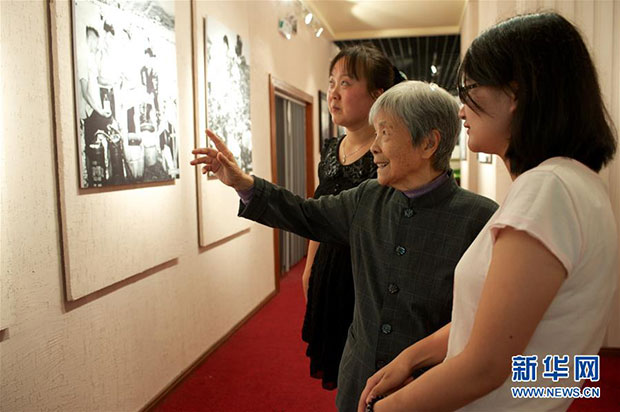 2013年5月21日,龚全珍(中)在江西萍乡市莲花县革命烈士纪念馆向人们讲述丈夫甘祖昌将军的故事。新华社记者 胡晨欢 摄