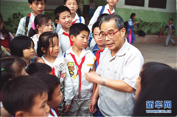 毛秉华给井冈山小学学生讲革命传统(1997年10月30日发)。 新华社记者 宋振平 摄