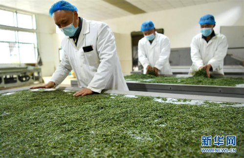 3月13日,在位于湖北省恩施土家族苗族自治州宣恩县万寨乡板场村的伍家台富硒贡茶公司,制茶师在按照传统工艺制作手工茶。新华社发(宋文 摄)