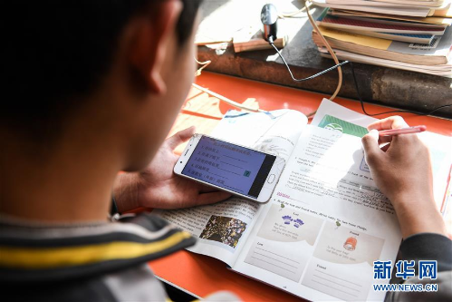 3月10日,内蒙古准格尔旗龙口镇红树梁村的初一学生刘进才在家中上网课。 新华社记者 刘磊 摄