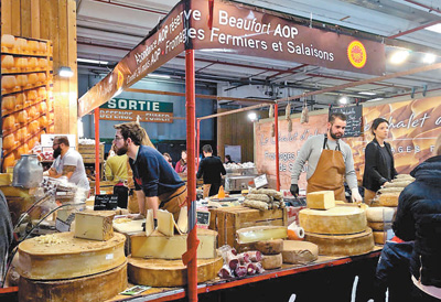 法国国际农业博览会上,一家法国奶酪企业在展示自家特色产品。