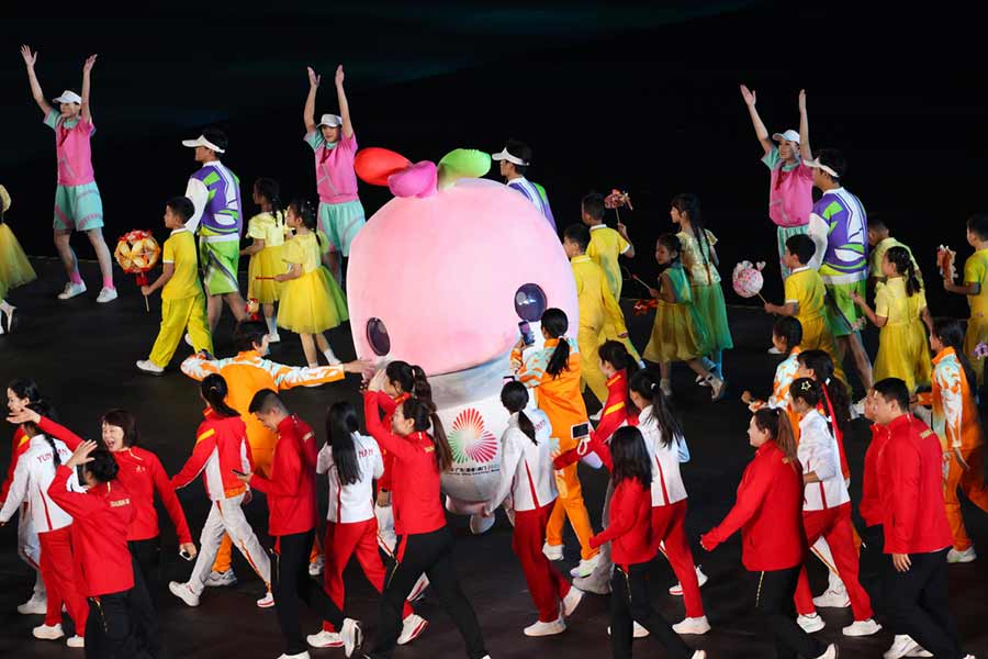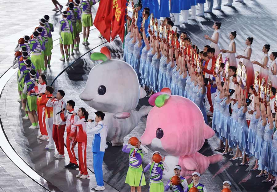中国日报11月21日电(记者 郑尔奇)2025年11月21日,第十五届全国运动会闭幕式在广东深圳前海欢乐剧场举行。
