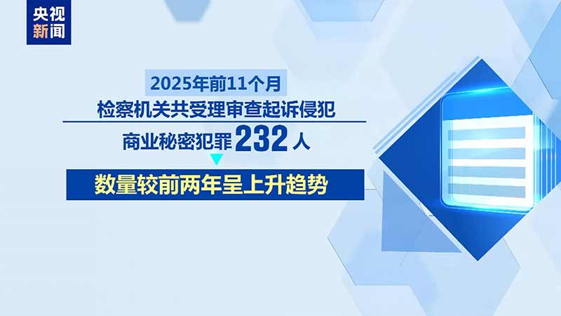 2025年前11个月,检察机关共受理审查起诉侵犯商业秘密犯罪232人,数量较前两年呈上升趋势。例如,广受关注的尊湃侵犯华为海思芯片技术商业秘密案,涉及国产芯片技术,涉案金额3.17亿元。上海检察机关以侵犯商业秘密罪提起公诉,14名被告人均被判处刑罚。