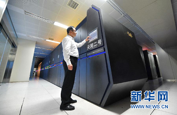 国防科技大学研制的天河二号超级计算机系统 新华社记者 龙弘涛 摄