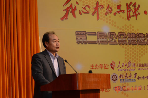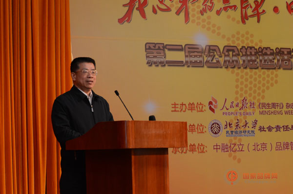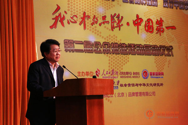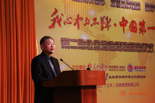 人民日报社《民生周刊》杂志社张巨龙副总编辑在启动仪式上致辞。张巨龙表示:品牌形象由消费者评价、由社会公众推选,广泛征求民意,征集社会普遍价值观,使命光荣,任务艰巨,工作浩繁。国家品牌网做为公众推选活动的主办方和具体执行单位,严格执行了“公开、公正、公平、公益”的四公原则,在坚持公益事业,履行社会职责中,赢得了来自各方面的充分肯定,也积累了宝贵的经验,为第二届活动中更好地服务品牌建设单位和广大消费者奠定了良好的基础。在党和国家“构建诚信、惩戒失信”的大环境下,在第一届的基础上,第二届公推活动深入挖掘品牌要素中的“中国第一”,推选出更多公众喜爱的品牌,营造“人人塑造品牌、人人维护品牌、人人传播品牌、人人尊敬品牌”的浓厚氛围。奖优儆劣,务实经营,为推动我国的品牌经济建设进程继续努力奋斗!