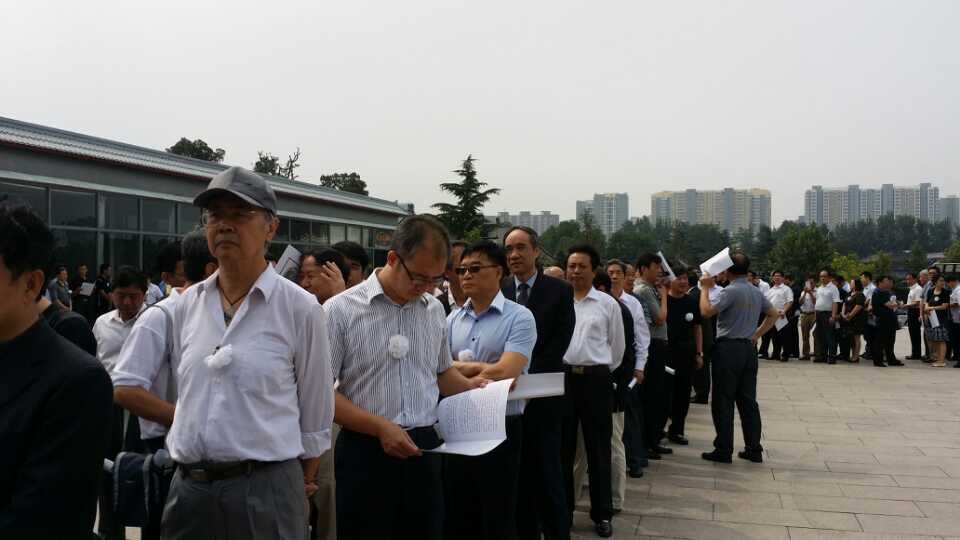 等候步入告别厅(左起:中国管理科学研究院副院长兼秘书长张乃剑、常务副院长孙钱章、副院长徐向忱、国家品牌研究所副所长陈奇睿)