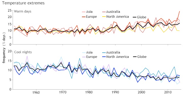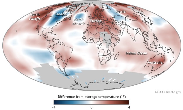 美国国家海洋气象局(NOAA)基于来自全球58个国家的413名科学家的有关数据,发布了年度评估报告。结果显示,包括高温天数、海平面高度,极端天气、灾害性气候出现频率、污染事件、冰川融化等数据都创下新纪录。这也与此前的研究结果一致,美国国家航空航天局(NASA)等机构在今年1月联合宣布,2014年成有记录的135年以来最热的一年。